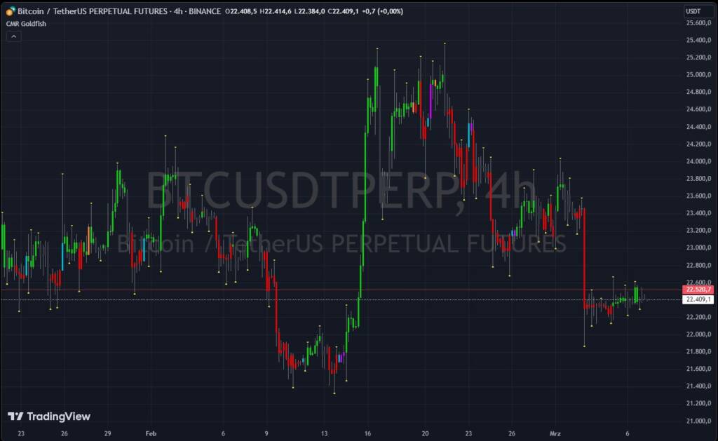 The Goldfish indicator gives you a view into how the market is moving and how money is flowing into or out of the market. It color codes the candlesticks with bullish , bearish and hedged colors.